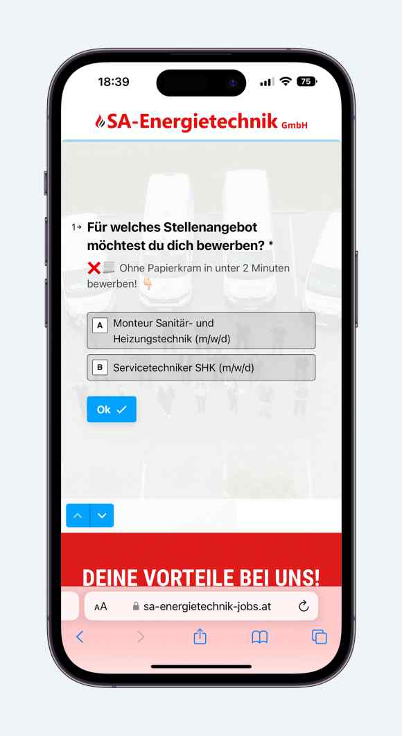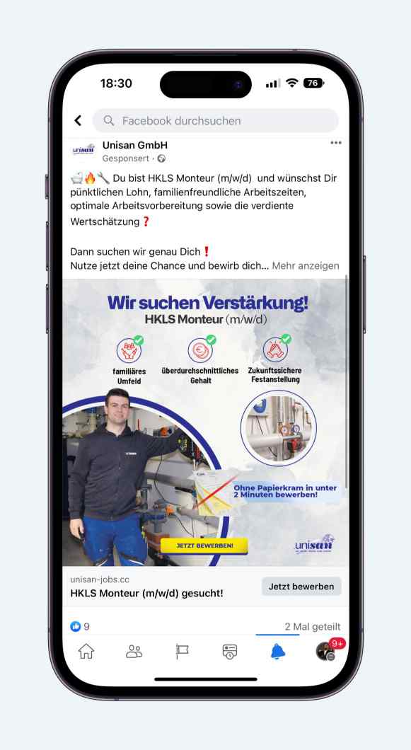 Falsch! Über 55% aller Arbeitnehmer im Handwerk sind unzufrieden in ihrem Job. Tatsächlich kommt qualifiziertes Fachpersonal schnell unter und befindet sich selten auf Stellensuche. Genau diese Menschen können wir durch unsere Methode gezielt ansprechen und sie von Ihnen und Ihrer Firma überzeugen.